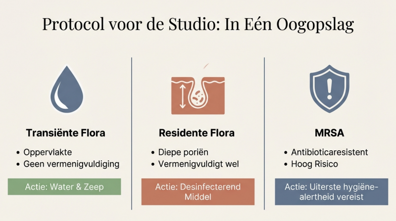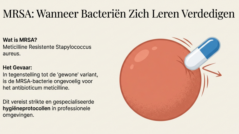 Een 'gewone' Staphylococcus aureus is op zichzelf niet direct zorgwekkend; deze komt bij een groot deel van de Nederlandse bevolking voor zonder klachten te veroorzaken. Maar de MRSA-variant is een ander verhaal. Het grote verschil tussen de gewone en de MRSA-bacterie, is dat de MRSA ongevoelig (resistent) is voor het antibioticum meticilline. Strenge hygiëneprotocollen zijn essentieel om te zorgen dat we altijd 100% veilig werken.